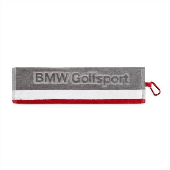 Thrice folded in a BMW Golfsport stripe design. Woven BMW Golfsport lettering, red carabiner to fasten.