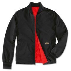 Two-tone light soft-down reversible jacket with innovative BMW M embossing. Fashionable design with quilted side in red and smooth side in black. Red side with embossed BMW M logo on the down chambers. Knitted collar, back hem and sleeve cuffs in multistructured knit. Black side with golden BMW M logo gel print. Side pockets on both sides. BMW M badge in webbed look. Regular fit.